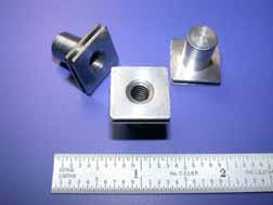 Description: A custom threaded nut designed to insert in a non-metallic material and provide a strong attachment for mounting a .250-20 threaded fastener.